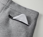 ワタリ幅は広すぎず、ゆるやかにテーパードしたすっきりめのシルエットが動きやすさも担保。裾口はあえてリブではなく2本針始末を採用したことで、スウェットパンツのような野暮ったさがなくアーバンテイストな仕上がりに。