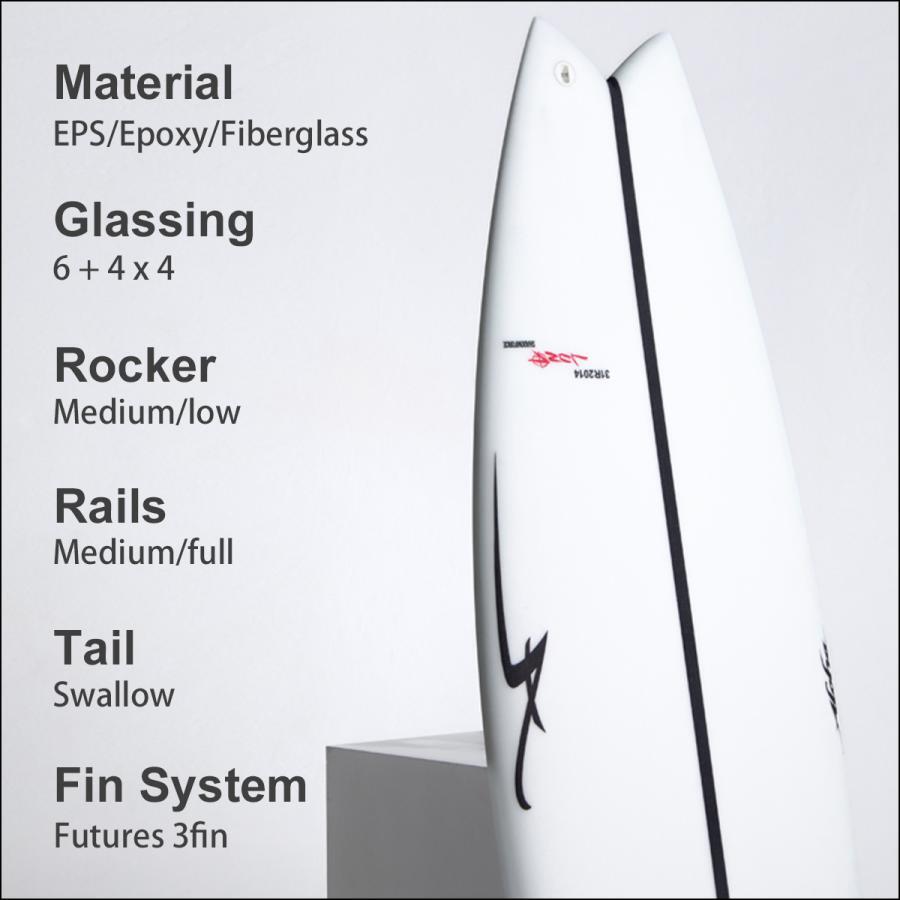 ボトムにはシングル〜ディープダブルコンケーブが施され、リフトとドライブを生み出し、クアッドフィンがコントロール性とリリース性を高めている。